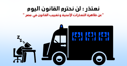 – برغم عدم قانونية التعذرات الأمنية وما فى ذلك من إهدار لحقوق المتهم و الدفاع ، بل ولسيادة القانون والقضاء أنفسهم ، إلا أن وزارة الداخلية وبعد أن كانت تتعامل مع هذا القرار على استحياء خلال العامين المنصرمين ، خاصة فى المناسبات المختلفة كالاحتفالات العامة والرسمية بزعم ضرورة تكثيف التعزيزات الأمنية وما شابه ذلك ، إلا انه وفي غياب المسائلة والحساب ، باتت وزارة الداخلية تتعامل مع قرار التعذرات الأمنية وكأنه أصبح أمر واقعي له مسوغ قانوني وذلك على خلاف الحقيقة.